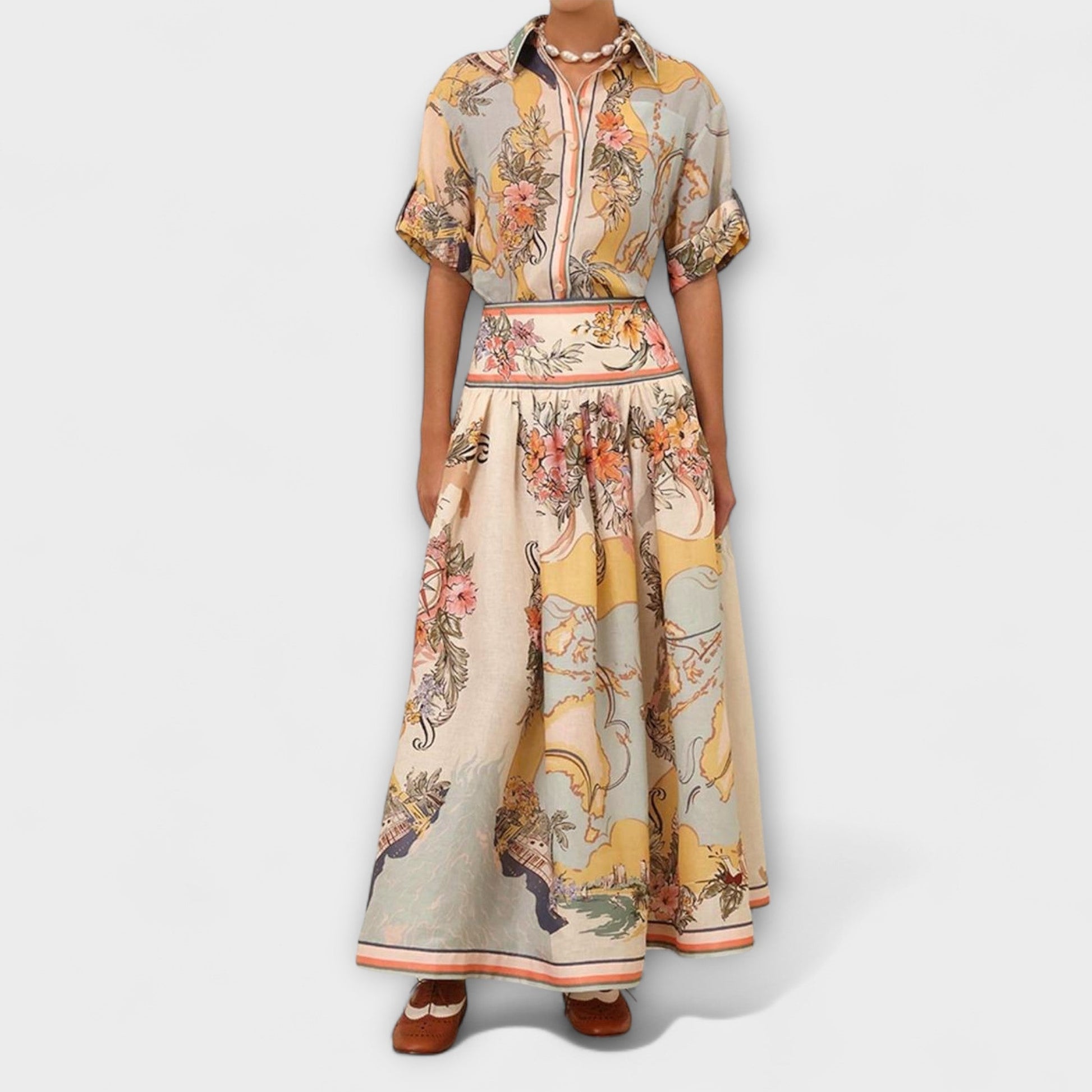 This vintage skirt with a wide waistband in A-line combines timeless elegance with vintage charm. Designed to accentuate the waist and create a flattering silhouette, the wide waistband highlights the hourglass figure. The A-line cut is elegant and flowing, adding a dynamic and classic touch to any outfit. From casual day looks to elegant evening styles, this skirt is a versatile must-have for any wardrobe.